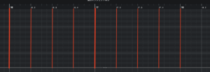 DAWソフトによって表示が異なる場合がありますが、今回の画像でいえば、赤い線が4分音符の箇所です。