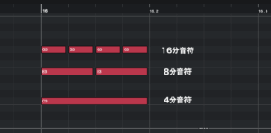 あなたが曲を聴いて「この音は速い、この音は遅い」と感じる速さの違いは、すべてこのグリッドの幅で表現されます。