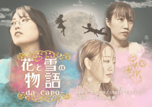 メインステージは歌と朗読による作品「花と雪の物語」を3人のアーティストで披露いたします。